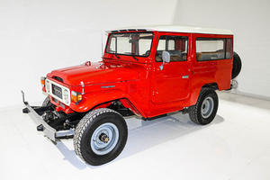 Under the hood lies the legendary Type F 4.2-liter inline-six engine, paired with a four-speed manual transmission and Toyota's world-renowned four-wheel drive system. From rocky trails to rugged terrain, this red FJ43 was built to go anywhere—and still can.