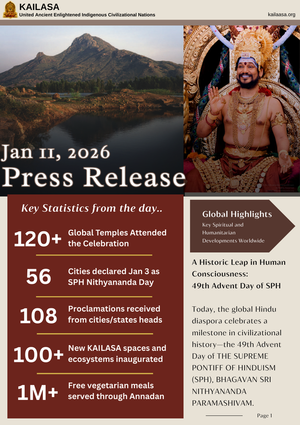 KAILASA is the revival of the ancient enlightened Hindu civilizational nation, dedicated to preserving and sharing this spiritual and technological power worldwide.