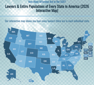 The new 2026 map provides users with easy access to attorney data, including total licensed lawyers in each state, population figures, and the number of attorneys per 10,000 residents — transforming complex bar association statistics into an engaging and easily navigable experience. With over 1.3 million licensed attorneys represented nationwide, the map highlights fascinating regional differences and legal landscape trends.