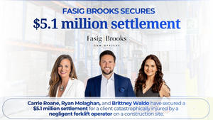 TALLAHASSEE, FL, February 13, 2026 -- Fasig Brooks proudly announces that the legal team of Carrie Roane, Ryan Molaghan, and Brittney Waldo has secured a $5.1 million settlement for a client catastrophically injured by a negligent forklift operator on a construction site. The litigation battle brought by attorneys Roane and Molaghan lasted more than two years in federal court and involved multiple witnesses and highly sophisticated experts located across the country.