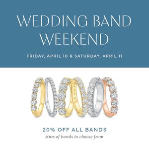 Enjoy Alson Jewelers' Wedding Band Weekend on April 10–11, featuring stunning wedding bands, exclusive giveaways, cocktails, and a luxury Spa Walden prize package.